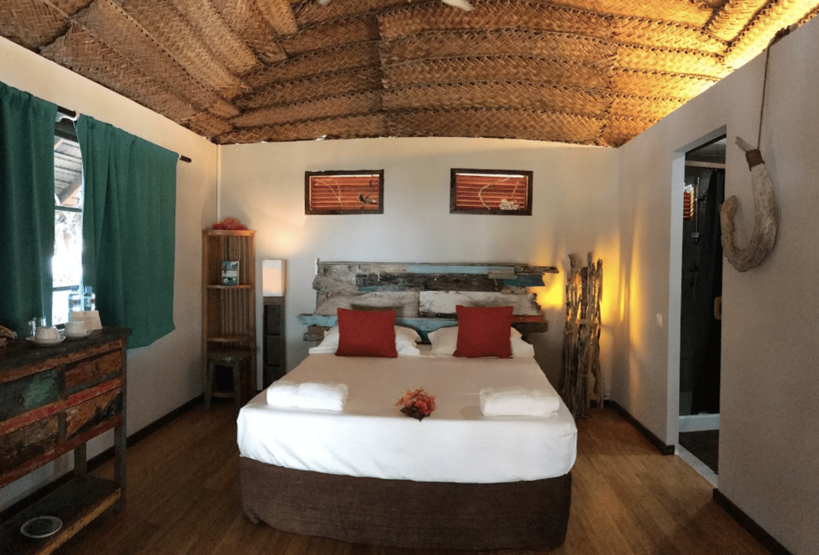 La pension comporte 15 bungalows. 10 sont situés côté plage, et disposent de la climatisation, d’une terrasse, et d’une salle de bain privées. 5 bungalows sont côté jardin, à quelques mètres de la plage, et en hauteur afin d’avoir une vue imprenable sur le lagon. Ils sont équipés d’une salle de bain et d’une terrasse privées, ainsi que d’un brasseur d’air.